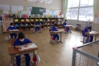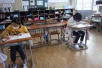では、真剣にテストに取り組む子どもたちの姿がありました。1年生でもかなりの問題量