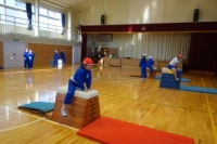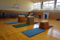 3,4年生の合同体育、3学期の最初の学習は「とび箱」です。跳び箱は跳べる、跳べ