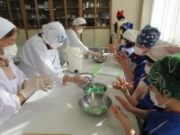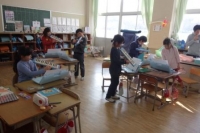 16日、1・2年生が生活科の学習で「だんごさし」に挑戦しました。東部老人クラブや