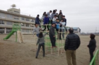 らなく悪戦苦闘したようです。やっと出来あがって、中に入ってにっこりでした。また、校庭