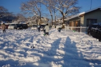 校庭も一面の雪野原、とてもきれいな光景でした。朝、早めに来た5,6年生は早速