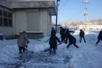 てくれました。また、子どもたちが歩きやすいように学校周辺の雪かきをしてくださった