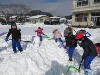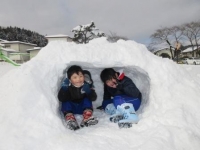 を行いました。1,2年生の力ではかまくら作りは一苦労、なかなか雪が大きな山までにな