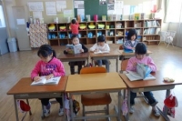 同じく朝の活動、下学年の様子です。朝の読書に取り組んだり、係の仕事に取り組ん