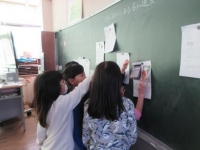 くにある昔のものを黒板に書き出し、調べる計画を立てていました。ちょうど、昭和の