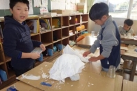 4年生が図工で「トロトロカチカチワールド」の作品作りに取り組みました。段ボールや
