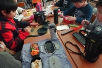 おうちの方に作ったいただいたお弁当を笑顔でほおばる子どもたちの姿がありました。