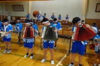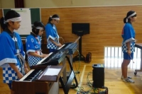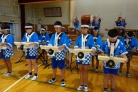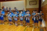 明日の地区音楽祭(合奏の部)に向けて、今日の2校時、体育館で最終練習を行い ました。衣装を着て、本番と同じように行いました。明日は、プログラム8番で10時30分