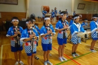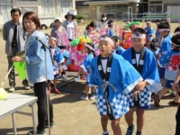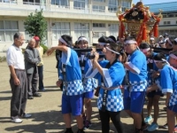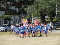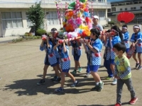 1日、資源回収、愛校作業の後、地区祭礼にお祭り集会として全校生で参加しました。