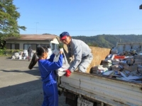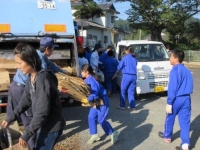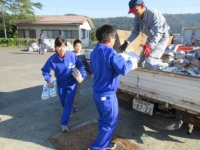 資源回収では、各方部から集められてきた資源物を業者さんのトラックに積み込み