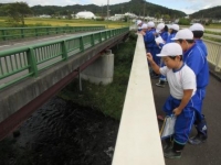 4日、5年生が理科の「川の学習」で見学学習を実施しました。釈迦堂川をさかのぼり、