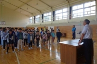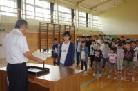 2名の入賞者がありましたので、その表彰を行いました。野崎校長先生からは、合奏、