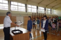 4日の昼、大里タイムを実施しました。内容は表彰と校長講話です。表彰は、地区