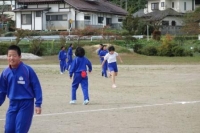 5日、今年度8回目の湯本小・大里小交流学習、2校時、高学年は校庭でタグラグビー