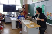 8日、職場体験学習として、卒業生の天栄中2年生が1名来校し、丸1日5年生の学習