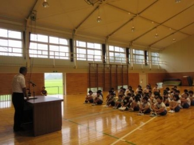 校長講話では、秋の一大行事、9月29日の地区合奏祭の練習、10月3日の地区陸上