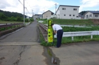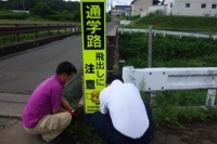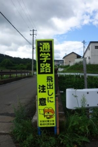 8日、村青少年育成村民会議よりいただきました交通安全看板を学校北側の通学路