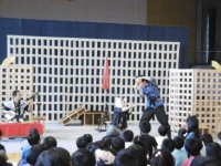 構成劇でした。子どもたちは、生の演劇に笑ったり、驚いたり、じーんとしたりして
