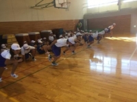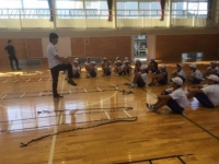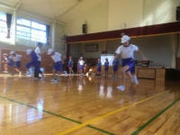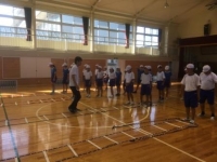 指導していただきました。体育館での陸上教室のあと、校庭で種目別の練習に入った