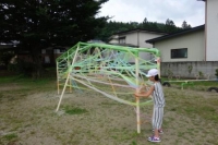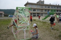 4年生5名と、図工科で「包むアート」という造形遊びの学習を行いました。校庭の遊具を