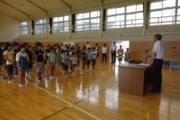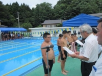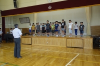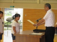 した。式の後は、7月に実施された村水泳大会の表彰を行いました。子どもたちの