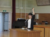 着任しましたので、着任式を実施しました。6年生が2人の先生に歓迎の言葉をしっか