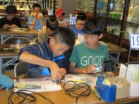 本日2日目の6年生の修学旅行は,ガラス館で最後の体験活動であるエッチングガラスづくりを行いました。