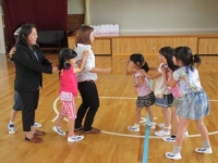ふれあう手本を見せて、じょじょに楽しく活動をすることができました。お母さんたちの