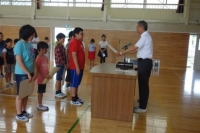 28日の大里タイムは、歯の作品コンクール、良い歯の児童の表彰のあと、保健