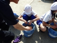 2017年5月25日 17時11分 23日、3・4年生が総合学習のお米の学習の一環として、バケツ稲を植えました。JA夢