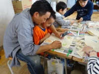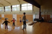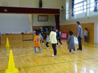 にお世話になり、エコバック作りを行いました。その後、体育館でのドッジボールを親子で