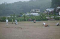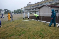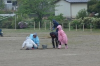 きたので早めに切り上げましたが、予定していたサッカーゴールの移動、砂入れ、校庭の