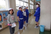 よろしくお願いします。写真は、1年生が今週から縦割り清掃に参加している様子で
