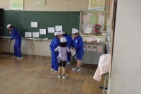 す。大里小では、1年生でも貴重な働き手、上級生から分担箇所を教えられて、