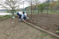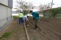 学校の畑を先週、用務員の板橋さんが耕耘機を地元の農家の方から借りてきて、