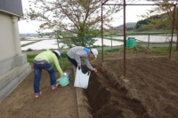 ていねいに耕してくれました。そこで、今日は石をとったり、肥やしを入れたりしながら