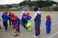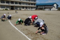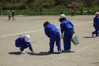 さて、2日の清掃時、その運動会に向けて全校生で校庭の石拾いを行いました。子ど