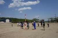 1日、運動会に向けて業間の時間に、全校生での種目「全校リレー」のチーム顔合わせ
