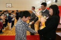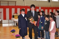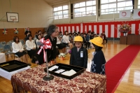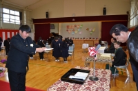 保護者や地域の皆さんのご臨席の中、担任の先生の呼名に大きな声で返事をし、