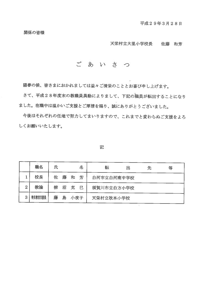 先日新聞でも発表されましたが,本校でも教職員異動があります。