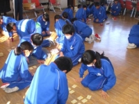 大里小学校では3~6年生が伝統文化に触れる機会として百人一首に取り組んでいます。