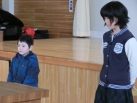 次に,2年生と4年生の代表児童が,冬休みの思い出と3学期頑張ることを立派に発表しました。