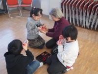東部地区老人クラブの皆様,社会福祉協議会の職員の皆様を先生にお願いしての,伝統文化のよさに触れる機会です。