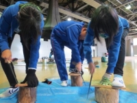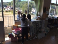 3日目は少し眠そうな目覚めでした。朝のつどいでラジオ体操代表児童が立派に行い、午前のメインの活動「焼き板作り」も上手にできました。退所式を行ってバスに乗り込み、1時40分に所を出発しました。