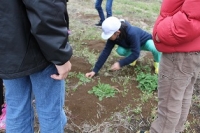 3年生が社会科の「農家の仕事」の学習で、学校の近くにある添田さんの畑の見学に行きました。子どもたちは農家の方々の働く様子を見学したり質問したりしました。農家の方の話を真剣に聞いて、熱心にメモを取っていました。実際に働いているところを見て、野菜を作る工夫やその大変さを実感していました。