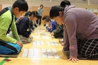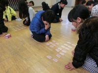 2015年12月16日 16時20分 5校時目に全校生で百人一首大会を行いました。1・2年生、3・4年生、5・6年生のブロックごとに対戦しました。今まで休み時間などに百人一首の暗唱を一生懸命に頑張ってきました。今日はその練習の成果を発揮して自分なりのベストを尽くしていました。始まりや終わりの礼など、作法も覚えて取り組むことができました。最後に各学年一人ずつ感想を発表をしました。「楽しくできました。」「精一杯がんばれました。」と達成感を味わっていました。