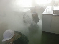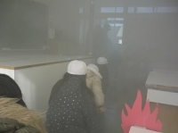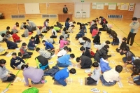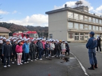 本日、第3回避難訓練を実施しました。今回は家庭科室から出火したという想定で行いました。子どもたちは「お・か・し・も」の合言葉を守って3分以内に避難することができました。須賀川消防署長沼分署の方々が来校し、火災や火災防止についてお話していただきました。また、水消火器を使った消火訓練や煙体験も行いました。煙を吸わないように低い姿勢で歩いて避難する練習をしました。ご家庭でも、ぜひストーブなどの安全な使い方や火事になった時の避難の仕方などを話題に挙げていただければ幸いです。