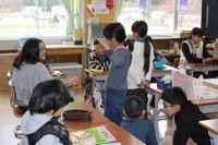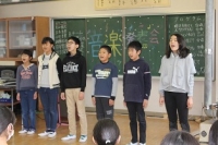 5校時目に全校生で百人一首大会を行いました。1・2年生、3・4年生、5・6年生のブロックごとに対戦しました。今まで休み時間などに百人一首の暗唱を一生懸命に頑張ってきました。今日はその練習の成果を発揮して自分なりのベストを尽くしていました。始まりや終わりの礼など、作法も覚えて取り組むことができました。最後に各学年一人ずつ感想を発表をしました。「楽しくできました。」「精一杯がんばれました。」と達成感を味わっていました。