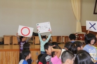 次に、○×クイズをしました。植物やタンチョウに関する問題が出ました。全校生でクイズを楽しみながら植物やタンチョウについて学びました。