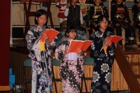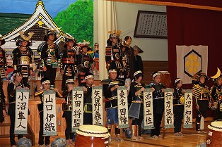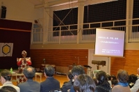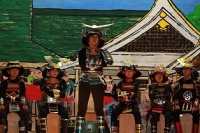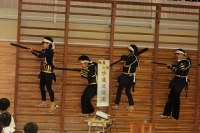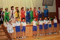 最後に5、6年生による『大里城物語』の発表がありました。今年はスライドを使って説明したり照明を利用してより臨場感あふれる演出がありました。さらに、子どもたちは練習の成果を発揮して、とても迫力のある演技を発表することができました。大里を守った先人たちの意思を受け継ぎ、最後まであきらめない心や協力する大切さを学びました。